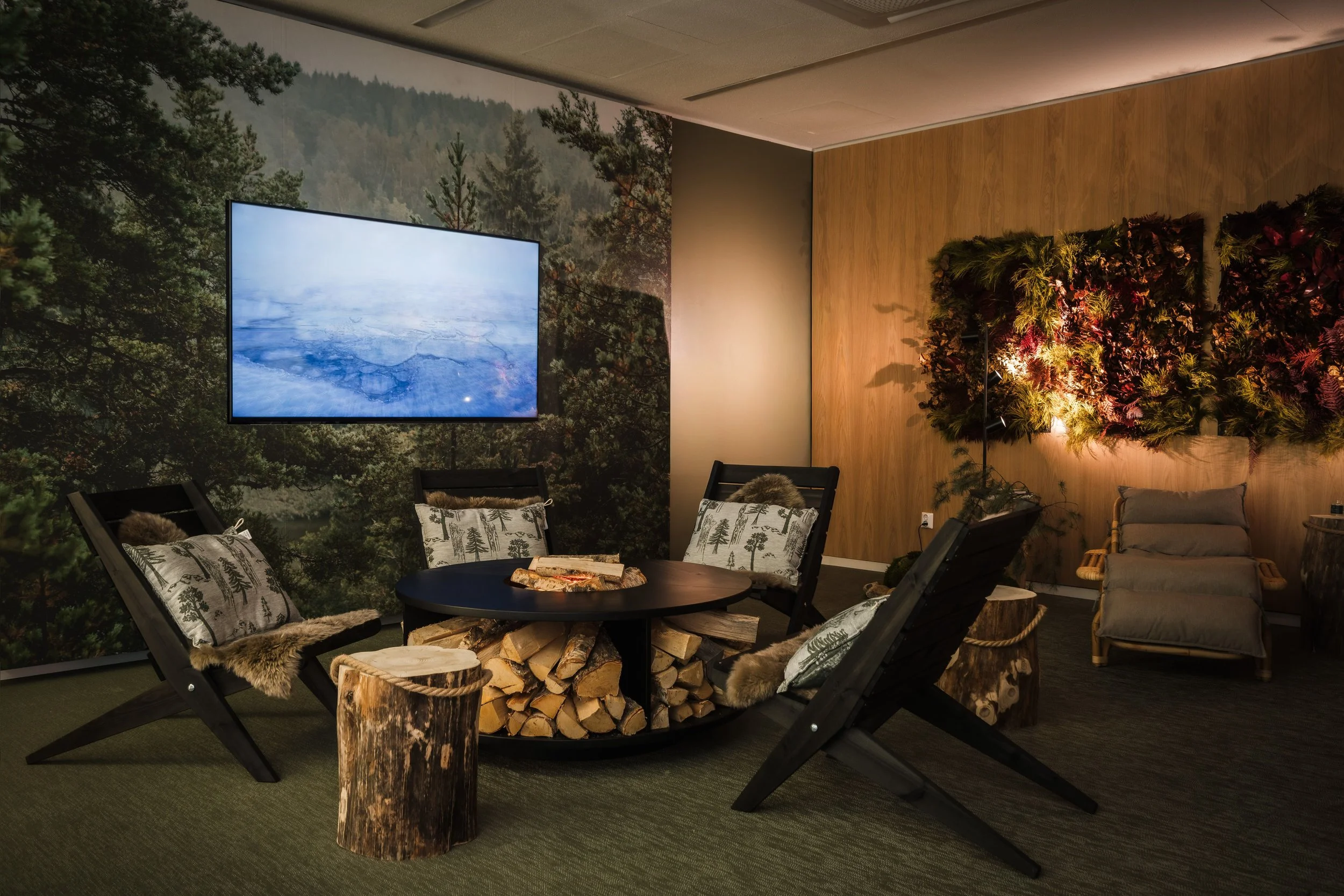Metsä/Skogen on suunnitellut ja toteuttanut Ifn Turun toimistolle tilan, joka tarjoaa työntekijöille mahdollisuuden rentoutumiseen ja palautumiseen keskellä työpäivää. Tilan tarkoituksena on edistää työhyvinvointia tarjoamalla rauhoittava ja luonnonmukainen tila toimistoympäristöön.